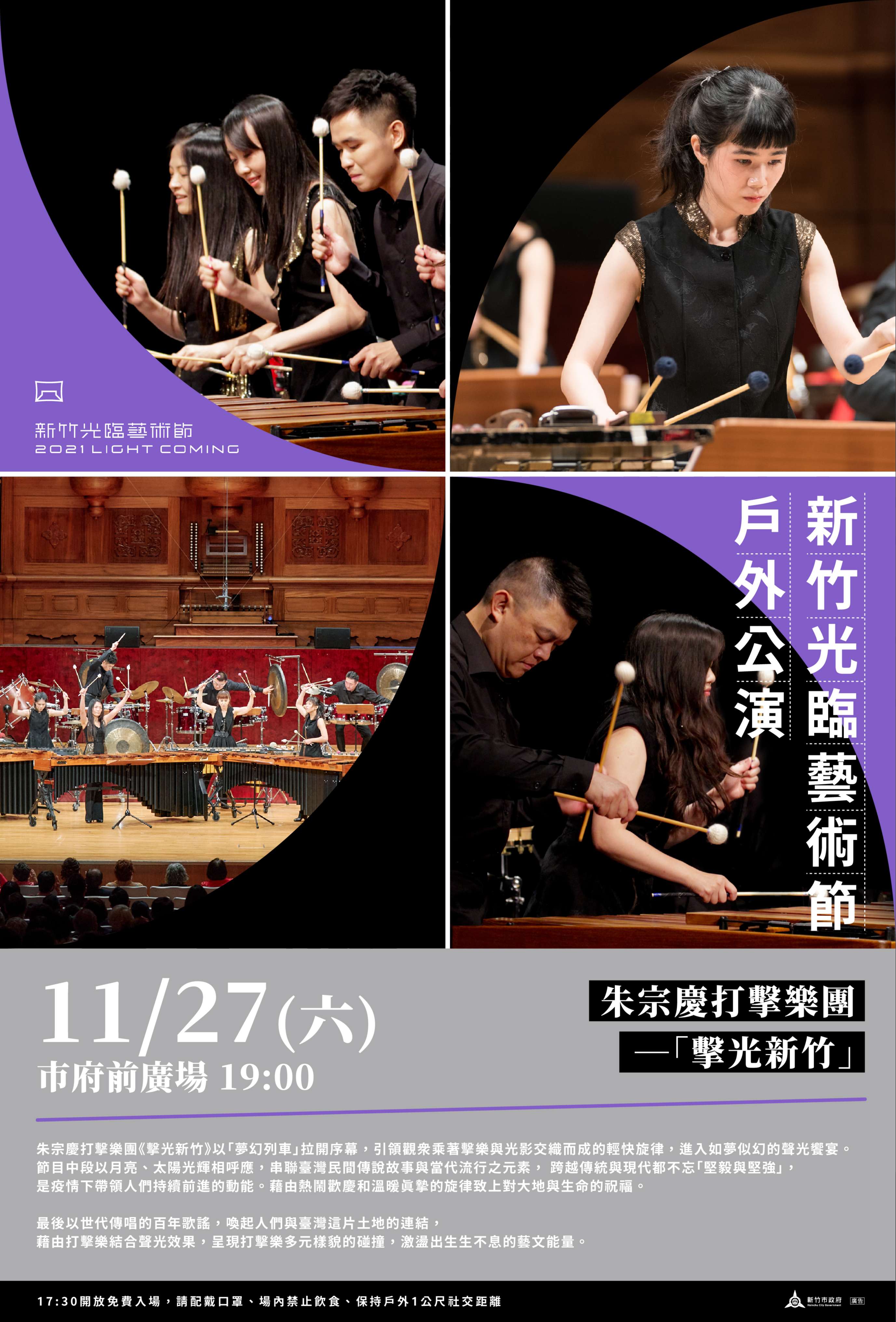 二、 | 活動名稱:2021新竹光臨藝術節戶外公演朱宗慶打擊樂團《擊光新竹》。 |