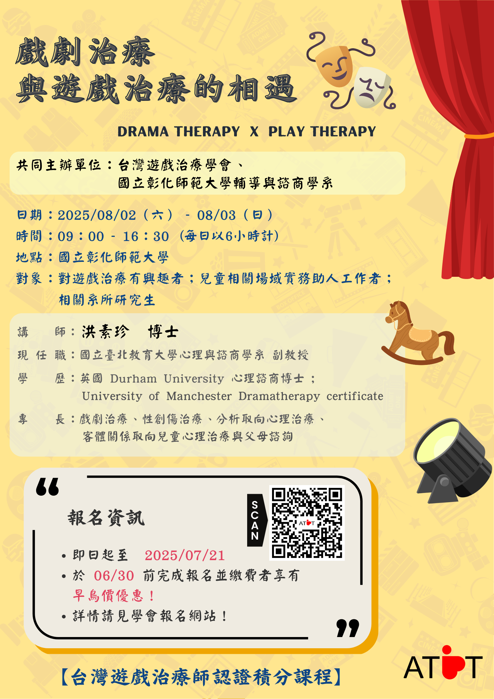 一、 | 戲劇治療與遊戲治療的相遇,課程時間及相關資訊。 |